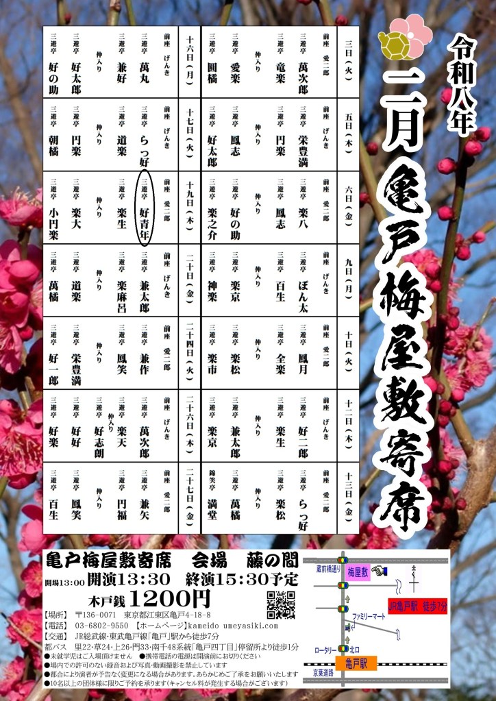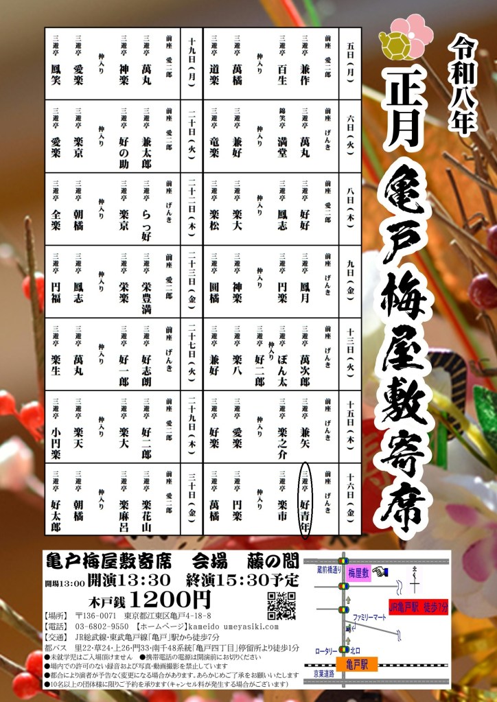 1月16日(金)亀戸梅屋敷寄席