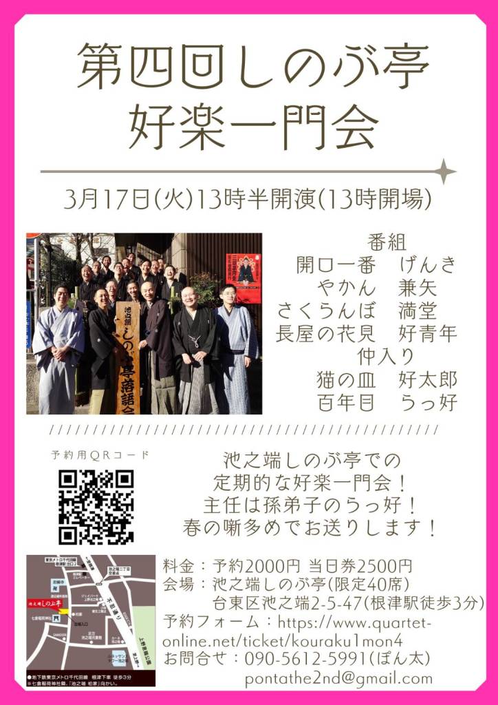 3月17日(火)池之端しのぶ亭 好楽一門会