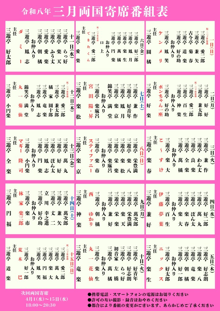 3月7日(土)両国寄席