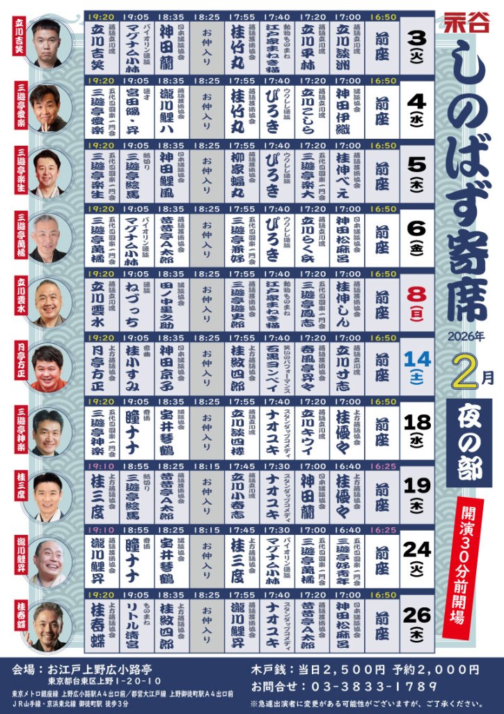 2月24日(火)上野広小路亭、しのばず寄席
