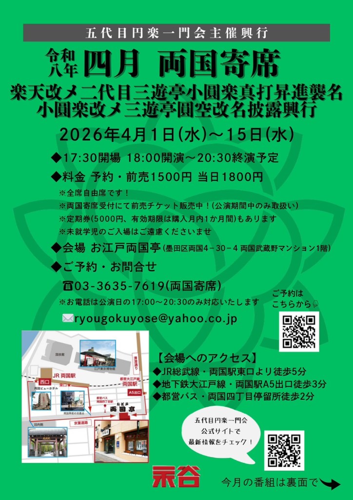 4月5日(日)両国寄席
