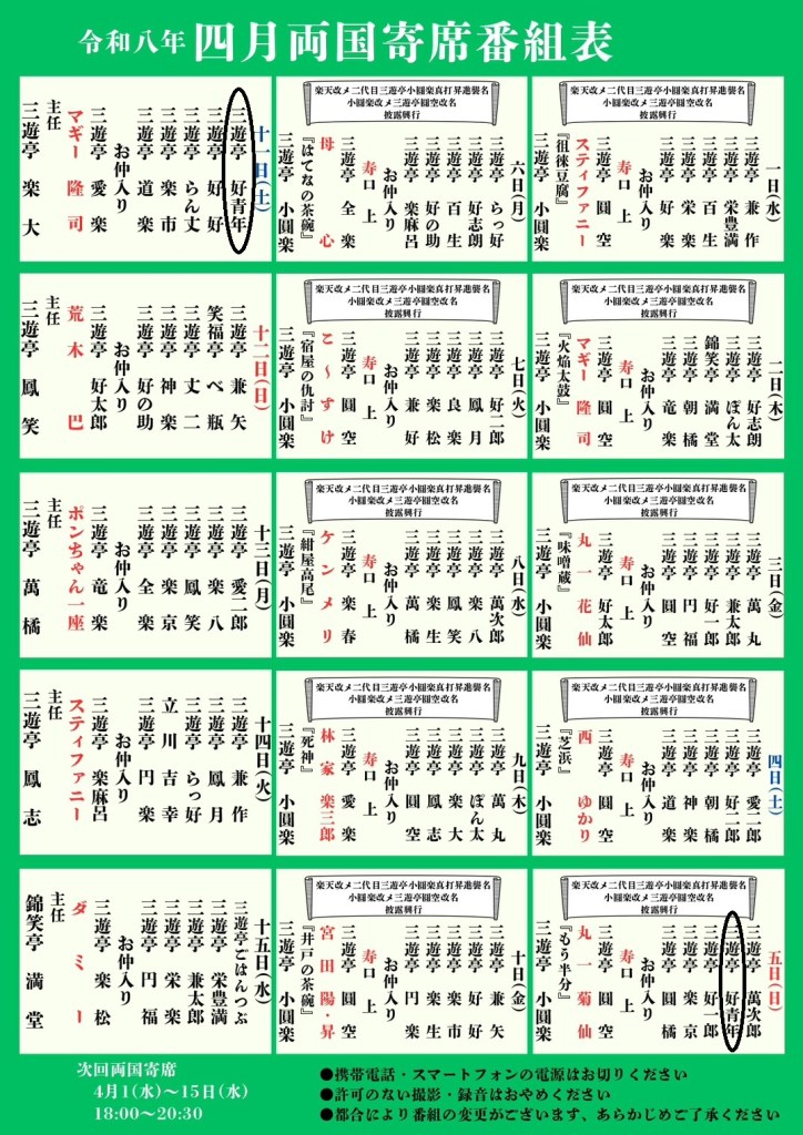 4月11日(土)両国寄席