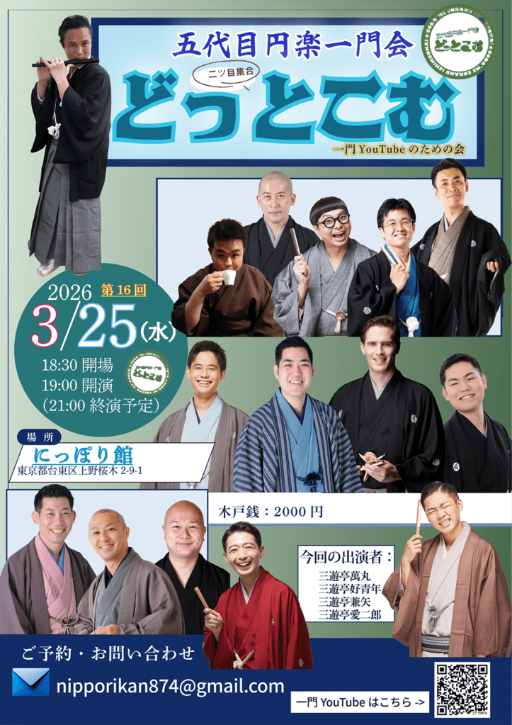 Show Venue: Asakusa CultureTourist Information Center 6th floor (located in front of Kaminarimon Shrine) Tickets: 2500 JPY (Paid at the venue in cash) Doors open: 14:30 Show starts: 15:00 Ends:16:00〜 For booking: sanyuteikouseinen@gmail.com