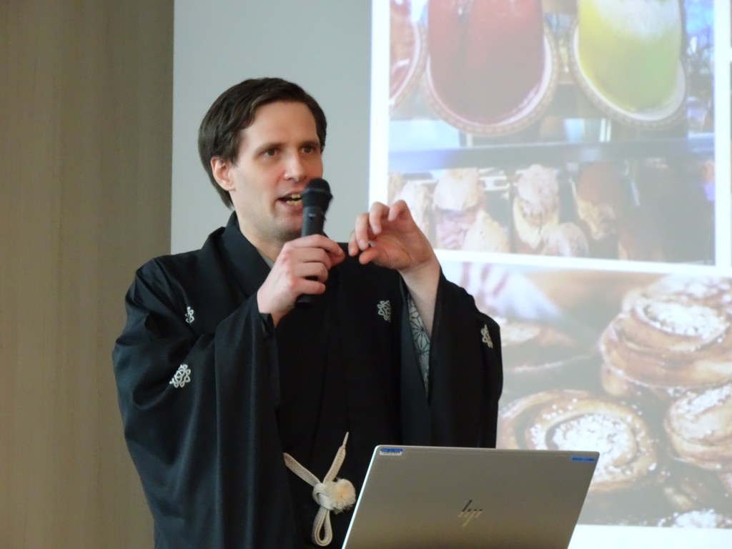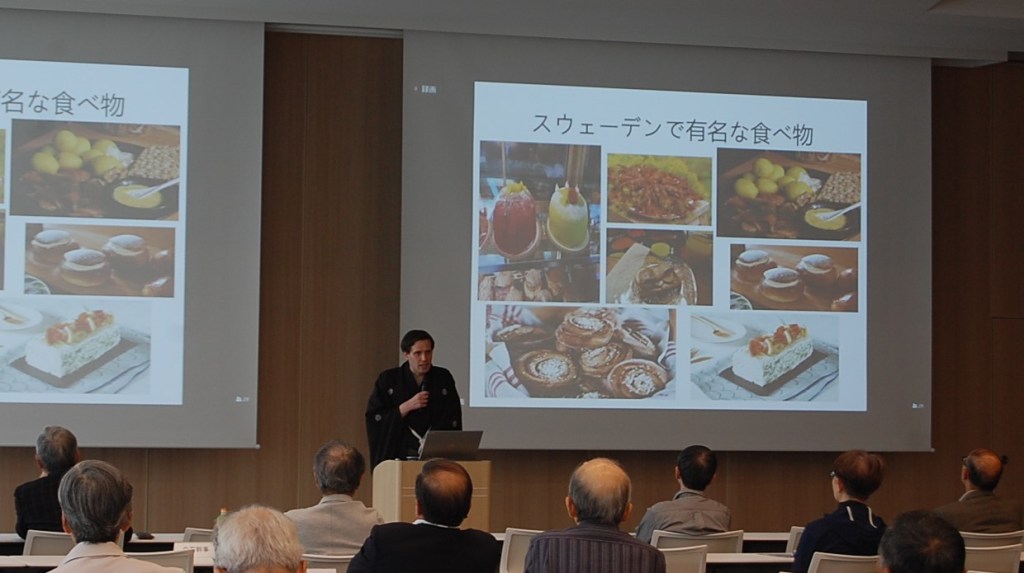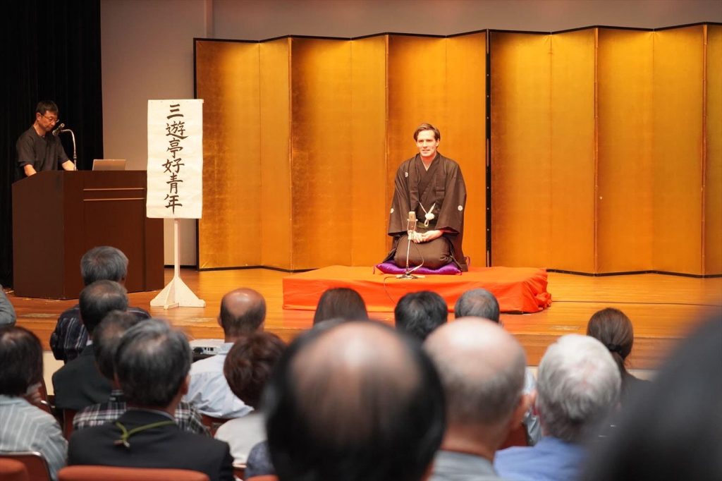 先週は「落語は海を越えて」、今週は「スウェーデン出身の落語家 三遊亭好青年からみえる日本の伝統芸能」という題でお話致しました。落語家になるきっかけ、日本での留学生活、スウェーデンの地理、スウェーデンの食文化や観光、スウェーデンの習慣や行事、お祭り、スウェーデンと新作落語、古典と新作落語の違い、外国人から見る日本の伝統芸能、徒弟制度、日本各地の落語会や海外での落語会、上方落語と江戸落語、日本と海外の笑いの違い、海外で落語を披露すること等、様々なトピックに触れ、笑いありの講演で皆さんに楽しんでいただいております。講演に加え落語も一緒にご依頼の場合もあります。