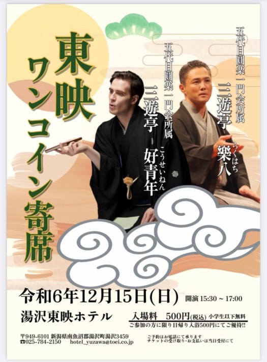 先週は大阪、今週末は、ご依頼を頂きまして新潟、湯沢東映ホテル様での落語会です。