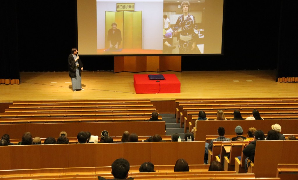 私も留学生として日本で学んでいたため、その頃の写真や経験、思い出について、また、日本との出会い、落語家になるまでの経緯、さらに日本で留学している学生へ伝えたいメッセージ等をお話しました。今後の勉学のモチベーションやキャリアについて考えるきっかけになってもらえたらと思います。また、「日本文化についての理解を深め、日本文化の魅力について知る貴重な機会となった。落語を身近に感じることができ、さらに異文化交流の大切さも感じた。」とのお声を頂き、皆様に喜んでいただけ嬉しく思います。