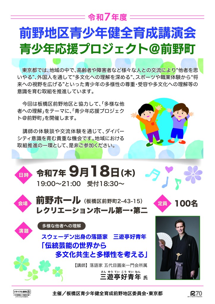 先日は、板橋区青少年健全育成前野地区委員会、東京都が主催する「令和7年度前野地区青