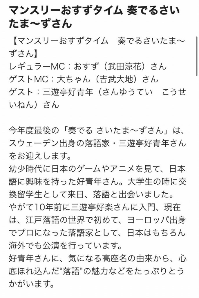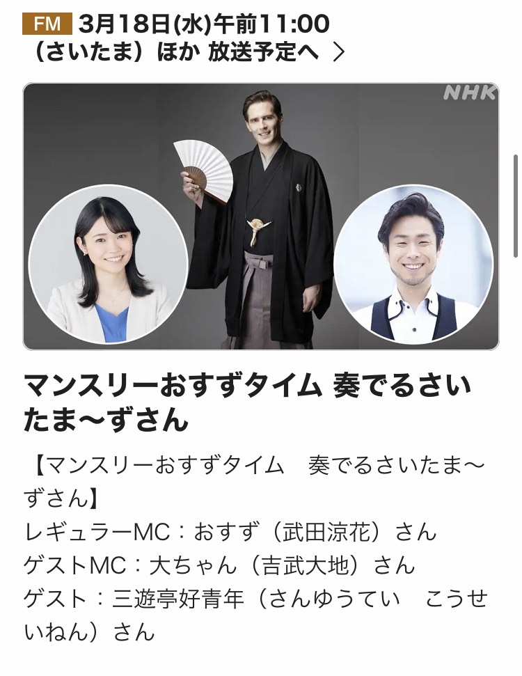 投稿日: 3月 18, 20263月 18, 2026 投稿者: erinilssonNHK埼玉放送局のラジオに出演します!ぜひ、ご視聴ください。 詳細は、下記リンクから https://www.nhk.jp/p/saitamas/rs/3GJ578X1MK/episode/re/NZL4GRGLP8/ 共有: X で共有 (新しいウィンドウで開きます) X Facebook で共有 (新しいウィンドウで開きます) Facebook いいね 読み込み中… 関連